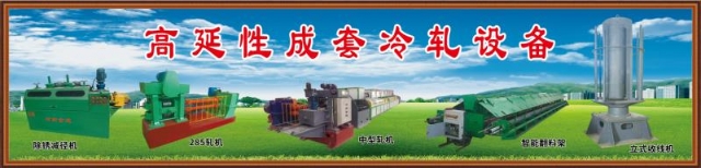 高延冷軋機(jī)的生產(chǎn)流程:立式上線--→除銹--→一次軋制--→二次軋制--→分卷剪--→熱處理--→測量直徑--→矯直測長--→立式雙收線--→翻轉(zhuǎn)--→打包--→入庫。整套生產(chǎn)線遠(yuǎn)程全*,大型線速達(dá)到600--1000米/分,