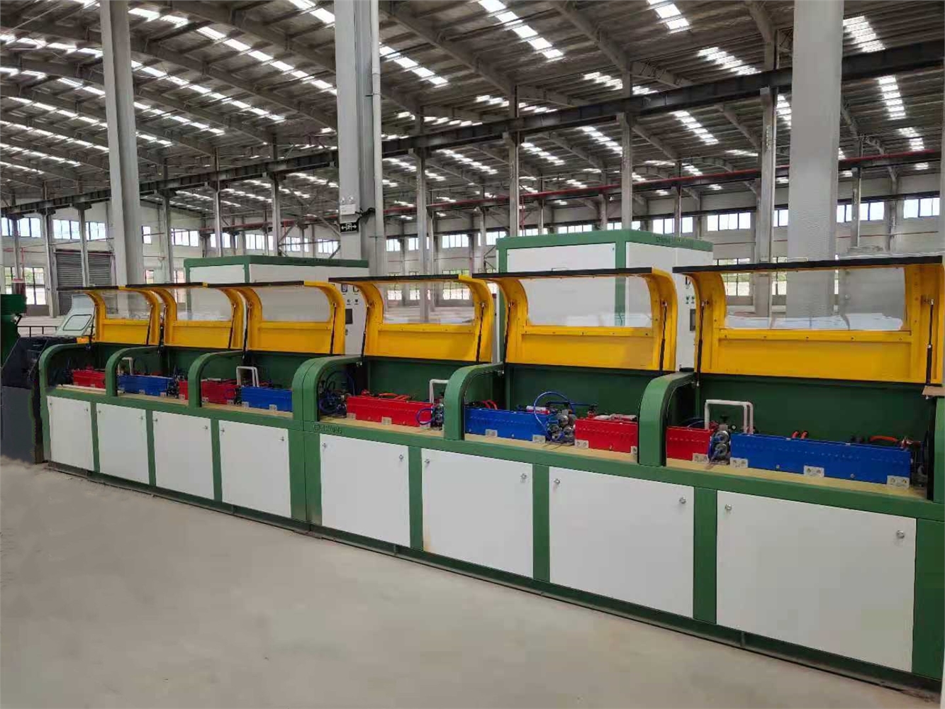 金迪機械螺紋鋼筋冷軋機工藝流程:立式放線,除銹減徑,成型軋機,中頻加熱,飛剪切斷,智能反轉(zhuǎn)料架,立式收線,打包入庫。采用中控操作電腦觸摸屏控制,具有工藝先進,結(jié)構(gòu)緊湊,操作方便,精度高,產(chǎn)量大,故障率低,占地面積小等特點。生產(chǎn)φ6-φ12高延性冷軋兩肋鋼筋,CRB600H符合新標(biāo)準(zhǔn),適用于高鐵、隧道、橋梁、環(huán)境建設(shè)等。